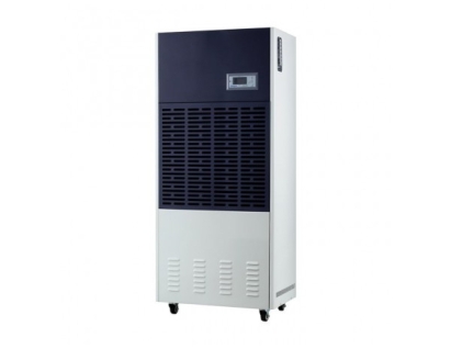 工业用除湿机通过风机将潮湿空气抽入机器内部,通过压缩机制冷将蒸发器降温至露点以下,潮湿空气经过蒸发器在表面凝结成水,汇集至接水盘后,流入水箱中,干爽空气经冷凝器重新加热由出风口排出,这样不断循环将室内湿度降低。